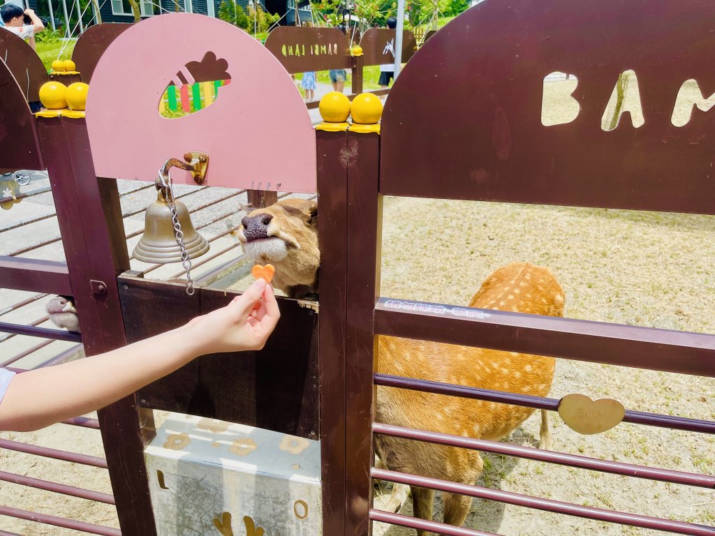 由「情鹿大師」坐鎮的情鹿占卜所,用一片蘿蔔牽起專屬的愛情籤。透過與梅花鹿的互動,為遊客抽出專屬愛情籤詩。求籤流程充滿趣味:憑票根至「斑比小點心餐車」兌換飼料,內含「愛心蘿蔔」;前往「桃花鹿區」,誠心將蘿蔔放置平台;輕搖鹿鈴,等待緣分中的「情鹿」前來取食;記下第一隻咬走蘿蔔的情鹿號碼;至「情卦移動所」搖籤,依號碼與籤詩內容解讀愛情運勢。這段過程宛如將命運交付給小鹿的選擇,趣味又浪漫,讓情侶與單身旅人都能帶走一份專屬心意。